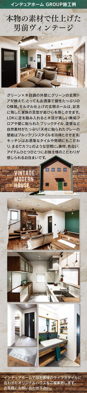 ヴィンテージスタイル、カリフォルニアスタイル、フレンチスタイル、プロヴァンススタイル、アメリカンスタイル、モダンスタイルの家のことなら、私たちインデュアホーム香川西が、こだわりの住宅を自信をもって心を込めておつくりします。自然素材の塗壁や、無垢のフロアーなどをふんだんに使用して、高性能でエコな住まいづくりを心がけています。新築(注文住宅)・リノベーションのお問い合わせは、お気軽にインデュアホーム香川西までご相談下さい。
