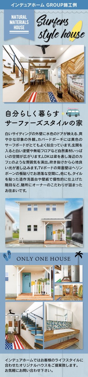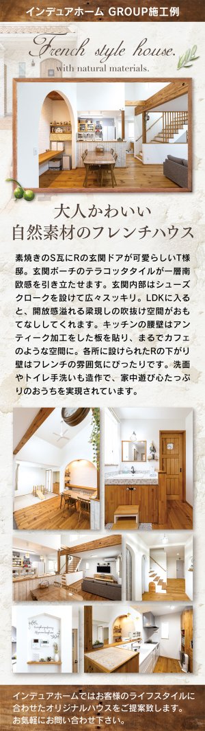 ヴィンテージスタイル、カリフォルニアスタイル、フレンチスタイル、プロヴァンススタイル、アメリカンスタイル、モダンスタイルの家のことなら、私たちインデュアホーム香川西が、こだわりの住宅を自信をもって心を込めておつくりします。自然素材の塗壁や、無垢のフロアーなどをふんだんに使用して、高性能でエコな住まいづくりを心がけています。新築(注文住宅)・リノベーションのお問い合わせは、お気軽にインデュアホーム香川西までご相談下さい。
