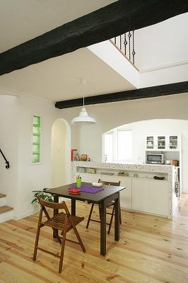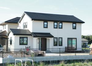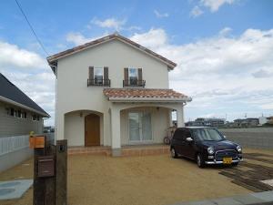 屋根瓦はイメリスのフランス瓦、シャビーで可愛い風合いがワインの様に色濃く醸し出されています。年月を経てもっと良い味わいになるそんな素敵なお家です。